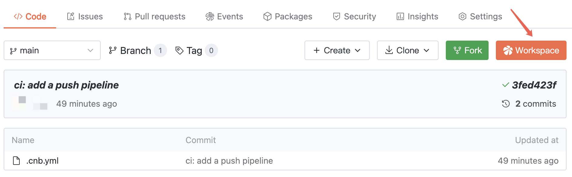 button in the top right corner to create a development environment with one click. Without any configuration, you can directly open a default development environment.