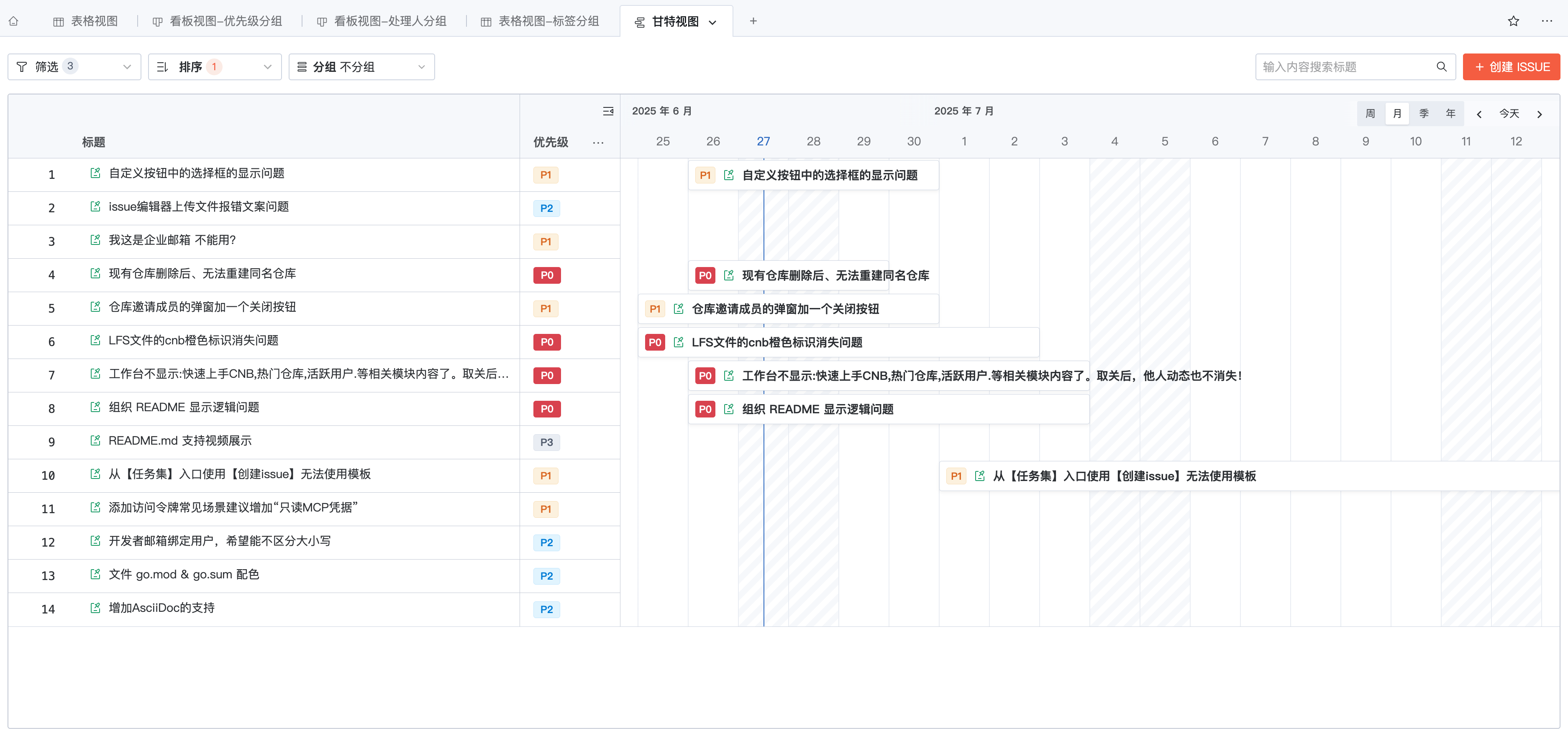 通过甘特视图,快速规划 Issue 的起止时间。